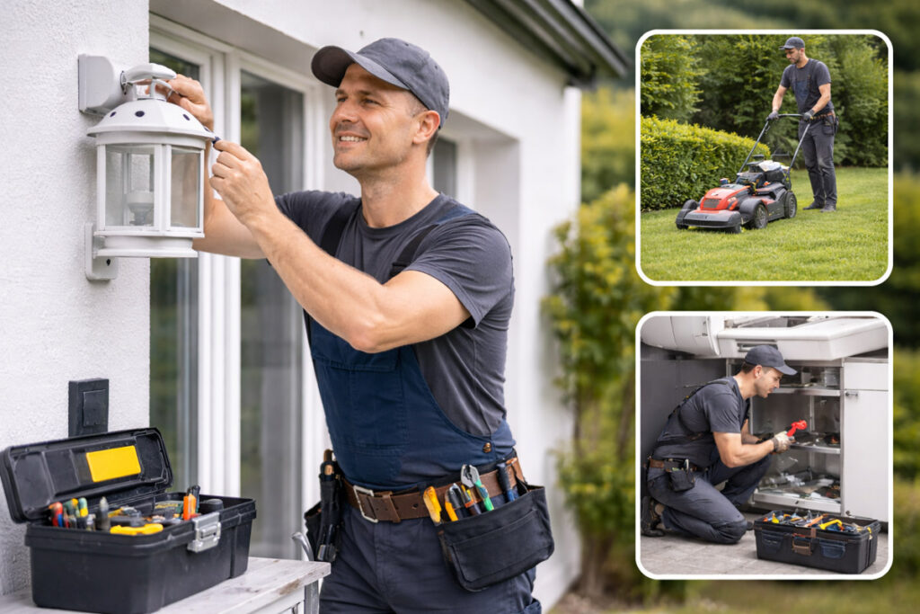 Kleinreparaturen, Austausch von Beschlägen, Montage von Regalen, Gardinenstangen & Spiegeln, Wartungs- und Instandhaltungsarbeiten ohne Fachanschlüsse, Unterstützung bei Mieterwechseln.